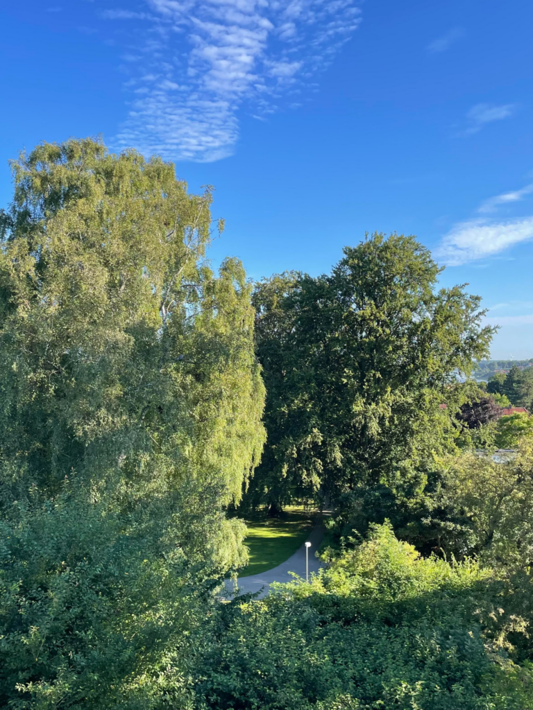 I en højtliggende taglejlighed med udsigt over park og havn, skaber vi sammen et kærligt overblik over dit liv fra det sted i dig, der kalder på opmærksomhed.